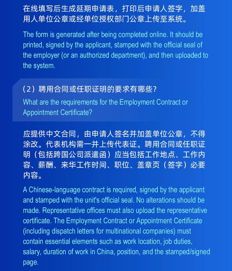 外国人来华工作小贴士|外国人申请来华工作许可延期相关问题